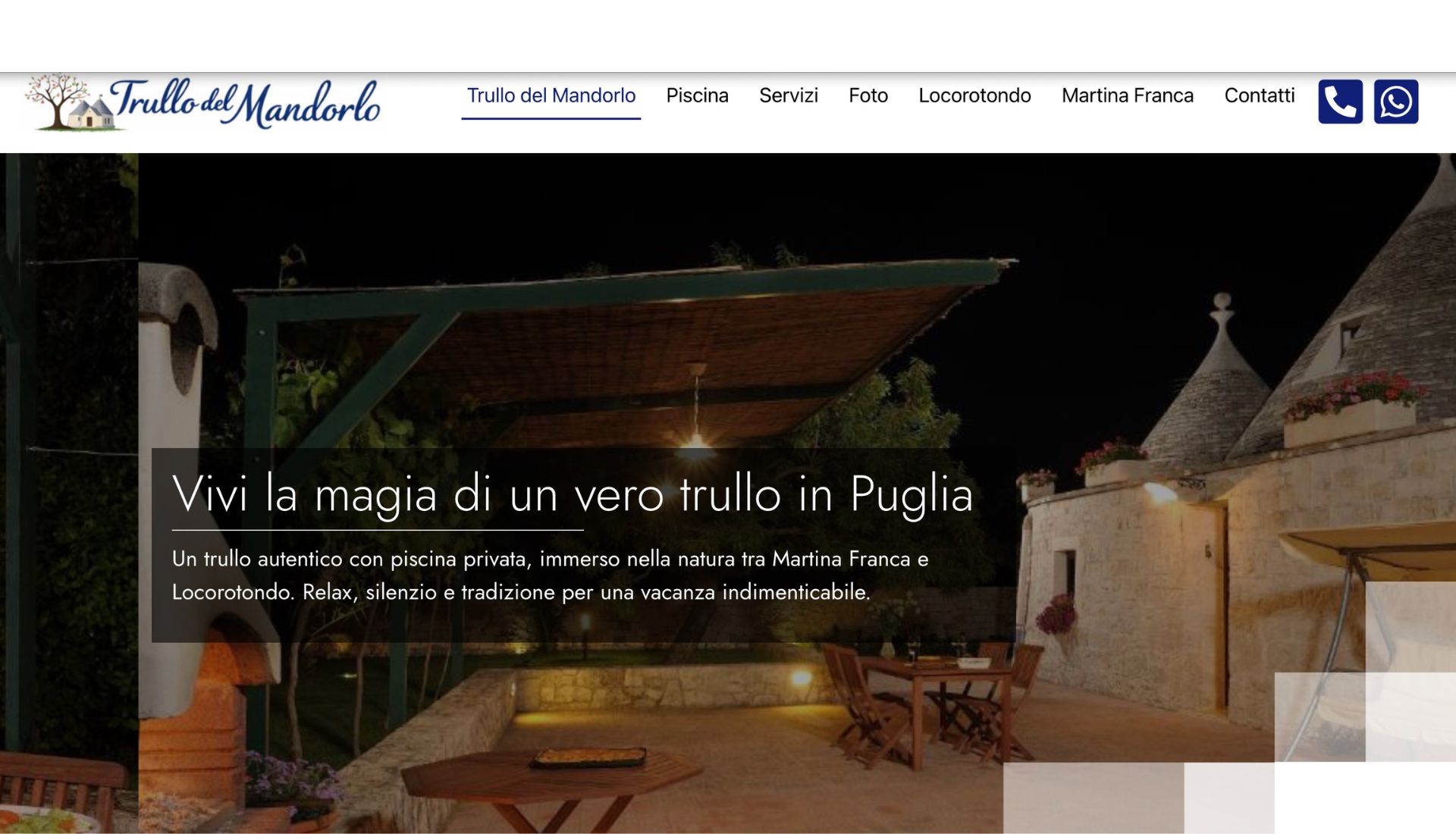 Web agency Monopoli una agenzia web con esperienza, specializzata nella realizzazione di siti web e-commerce, siti turistici e aziendali. Portiamo il tuo progetto web in Puglia anche per le case vacanza a Monopoli al successo, sfruttando la nostra esperienza 20entennale in campo SEO a Monopoli e in Puglia. Siamo esperti di social marketing e campagne DEM. Il nostro obbiettivo è quello di prendervi per mano e portarvi al successo nel web.